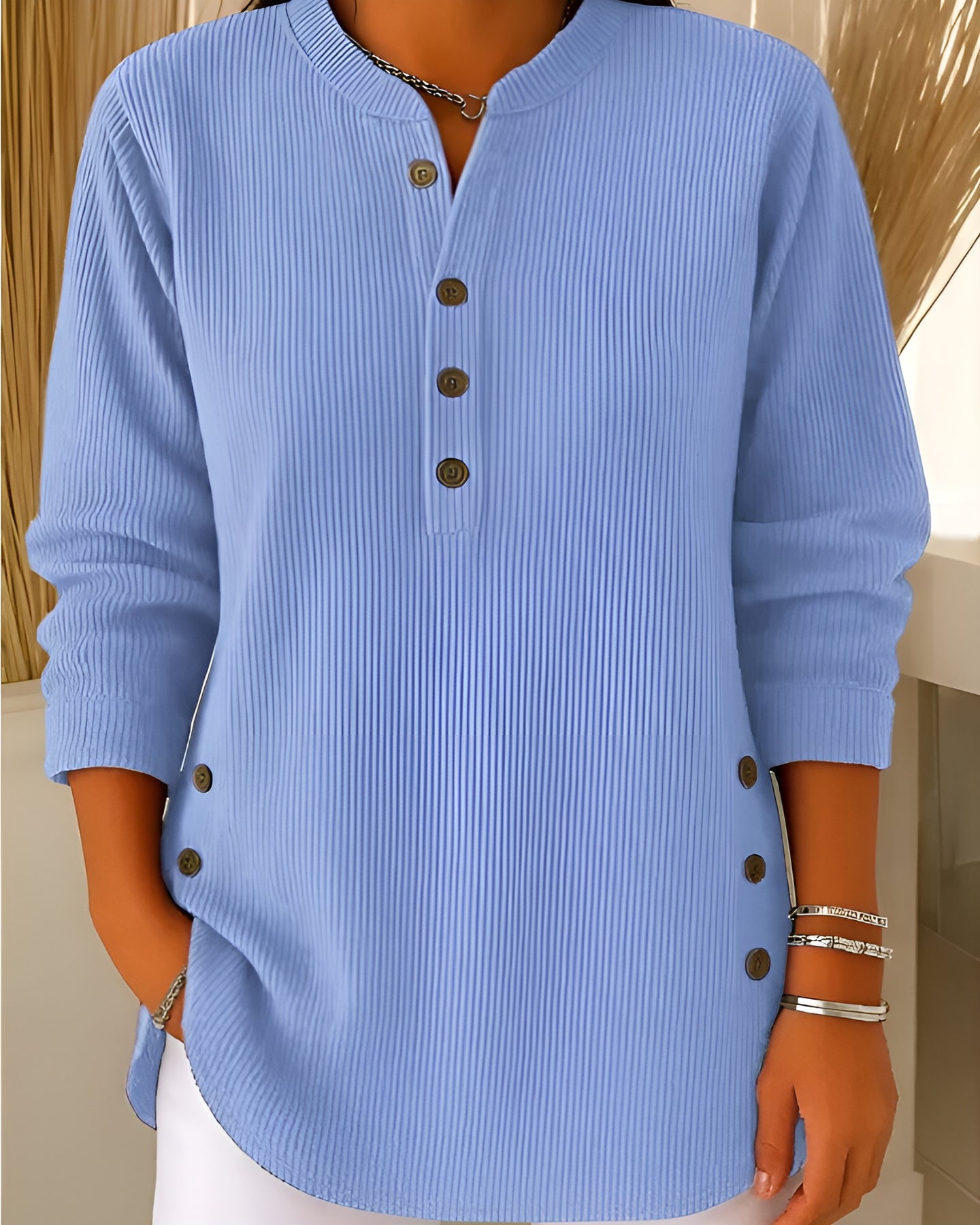 ✔ Full-Length Sleeves: add warmth and structure, giving the top a clean and refined finish.